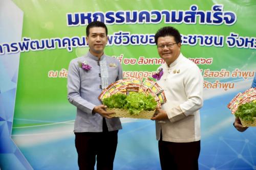 โอกาสนี้รองผู้ว่าราชการจังหวัดลำพูน ได้มอบเมล็ดพันธุ์พืชผักสวนครัว เพื่อสนับสนุนการสร้างความมั่นคงทางอาหาร ให้กับพัฒนาการอำเภอเพื่อขยายผลต่อให้ครัวเรือนเป้าหมาย ทั้ง 8 อำเภอ พร้อมเยี่ยมชมนิทรรศการเป็นลำดับต่อไป