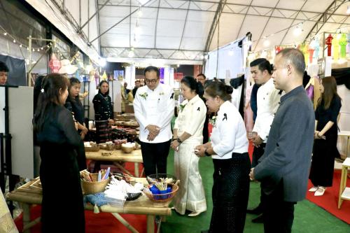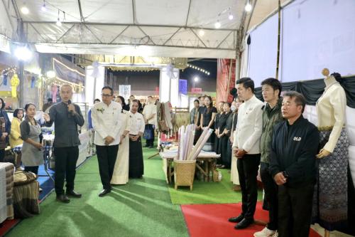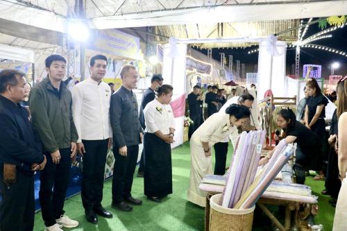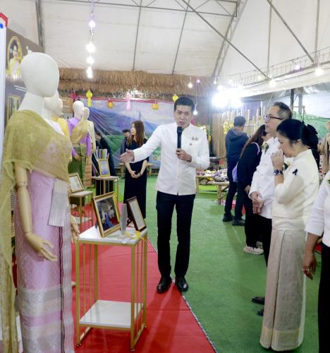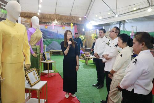 นายเมธเมธา พัคค์สุนทร นายอำเภอทุ่งหัวช้าง พร้อมด้วยนายคณิตพงษ์ นาคกระแสร์ พัฒนาการอำเภอทุ่งหัวช้าง นักวิชาการพัฒนาชุมชน เครือข่ายผู้ผลิตผู้การ OTOP อำเภอทุ่งหัวช้าง องค์กรปกครองส่วนท้องถิ่น ร่วมต้อนรับนายปิยพงศ์ ชูวงศ์ รองผู้ว่าราชการจังหวัด รักษาราชการแทนผู้ว่าราชการจังหวัดลำพูน นายโยธิน ประสงค์ความดี รองผู้ว่าราชการจังหวัดลำพูน นายปรีชา สมชัย ปลัดจังหวัดลำพูน หัวหน้าสำนักงานจังหวัด หัวหน้าส่วนราชการจังหวัดลำพูน เหล่ากาชาดจังหวัดลำพูน ในการเยี่ยมชมสินค้าอัตลักษณ์ท้องถิ่น ”ร้านอำเภอ“ ของอำเภอทุ่งหัวช้าง การจัดนิทรรศการเทิดทูน ”พระมารดาแห่งไหมไทย“ รางวัลแห่งความภาคภูมิใจ ผ้าไหมอำเภอทุ่งหัวช้างเป็นแหล่งผลิตผ้าไหมยกดอกลำพูน อันดับหนึ่งของจังหวัดลำพูน รางวัลจากการประกวดผ้าลายพระราชทาน ในทุกๆ ปี โครงการตามแนวพระดำริฯ "ผ้าไทยใส่ให้สนุก" สมเด็จพระเจ้าลูกเธอ เจ้าฟ้าสิริวัณณวรีนารีรัตนราชกัญญา ที่ทรงตั้งพระทัยมั่นในการสืบสาน รักษา และต่อยอดพระราชปณิธานอันยิ่งใหญ่ การนำเสนอเสื้อผ้าและเครื่องแต่งกายที่ถูกออกแบบและตัดเย็บจากผ้ายกดอกที่เป็นทั้งไหมและฝ้าย ผ้าฝ้ายทอมือ และผ้าชนเผ่า ย้อมสีธรรมชาติ รังสรรค์ให้มีความสวยงาม ร่วมสมัย มีสไตล์ โดยยังคงกลิ่นอายของวัฒนธรรมล้านนาและอัตลักษณ์ลวดลายของผ้าลำพูน และการนำเสนอฐานการเรียนรู้ ”ทุ่งหัวช้างโมเดล“